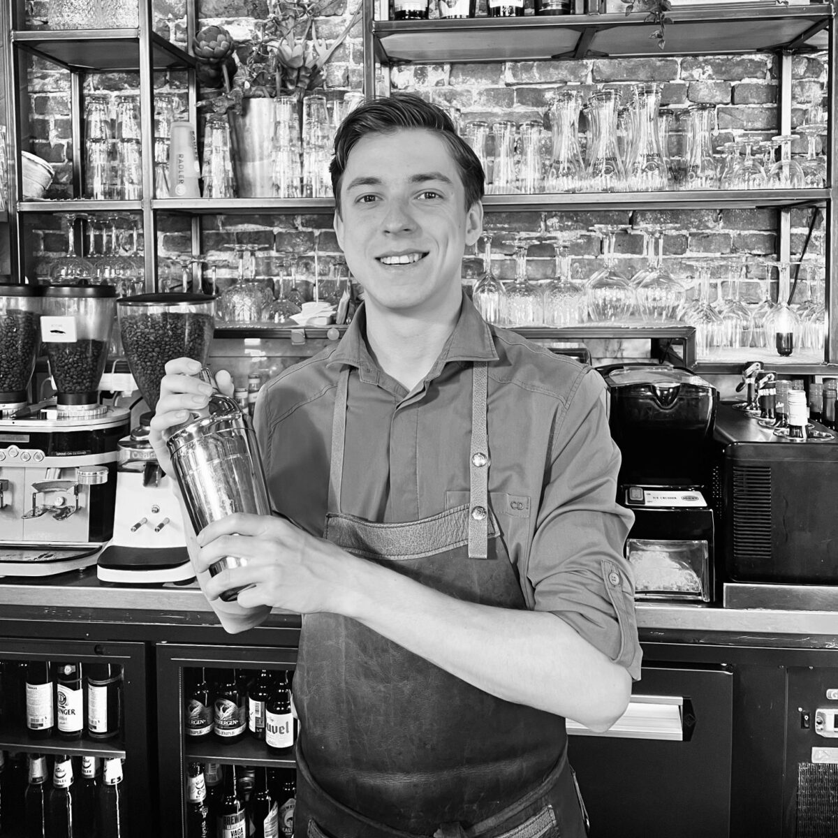 ALL THE WAY FROM OEKRAÏNE. INMIDDELS EEN VAN ONZE VASTE BARMANNEN EN HIJ MAAKT MET LIEFDE ALLE DRANKJES. KOFFIE’S, COCKTAILS, NOEM MAAR OP, HIJ KAN HET ALLEMAAL!